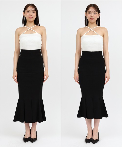 シンプルなデザインながら、身体のラインを綺麗に魅せる美しいマーメイドシルエットやセンタースリットが女性らしさを演出してくれるスカート。