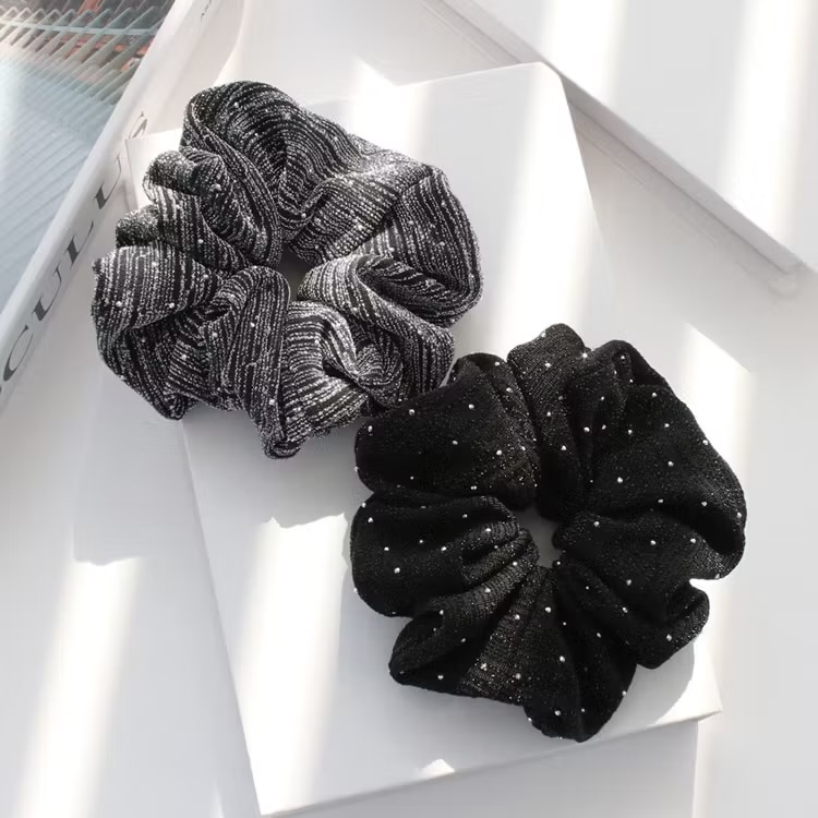 モノクロカラーにラメドットがデザインされた可愛いシュシュです♡