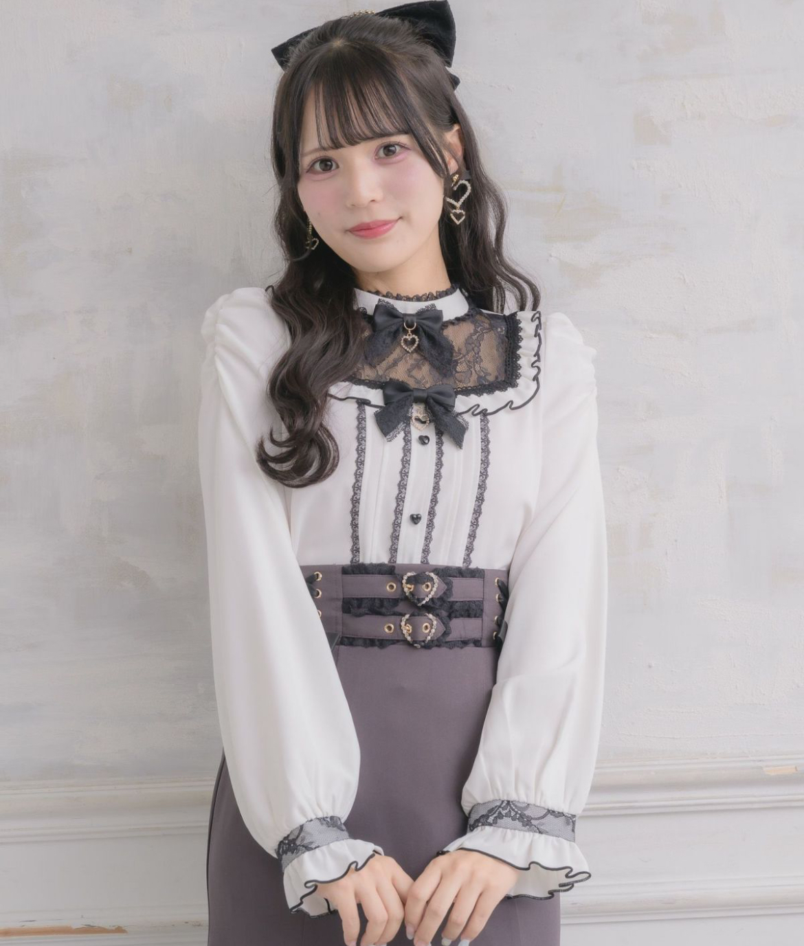 ダブルリボンと繊細なレース使いが目を惹くブラウスのお目見えです♡配色デザインが程よい甘さを演出し、フリル袖やハイネックディテールが“キレイめ感”をプラス。シーズン好みなボルドーカラーを添えて3色のラインナップです。