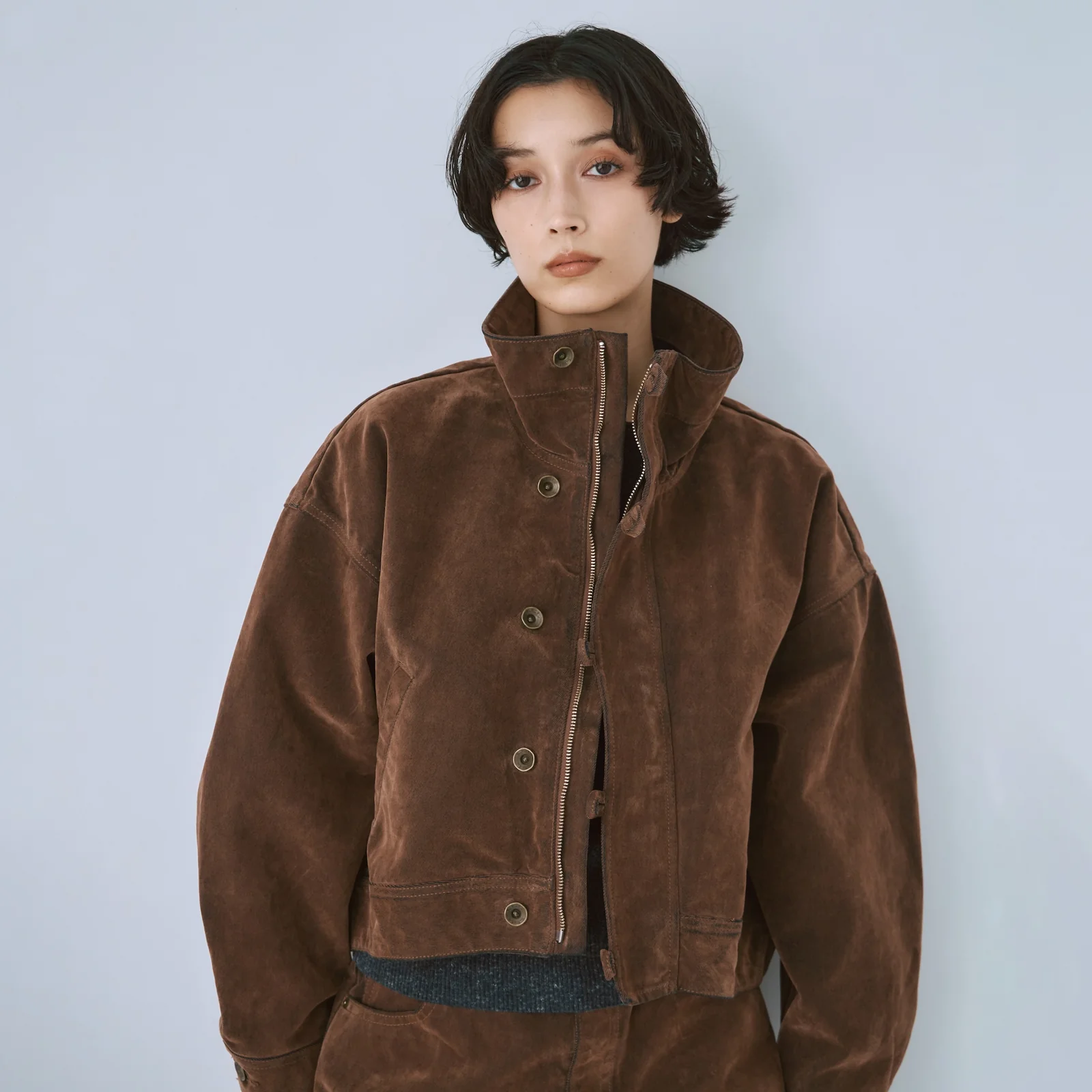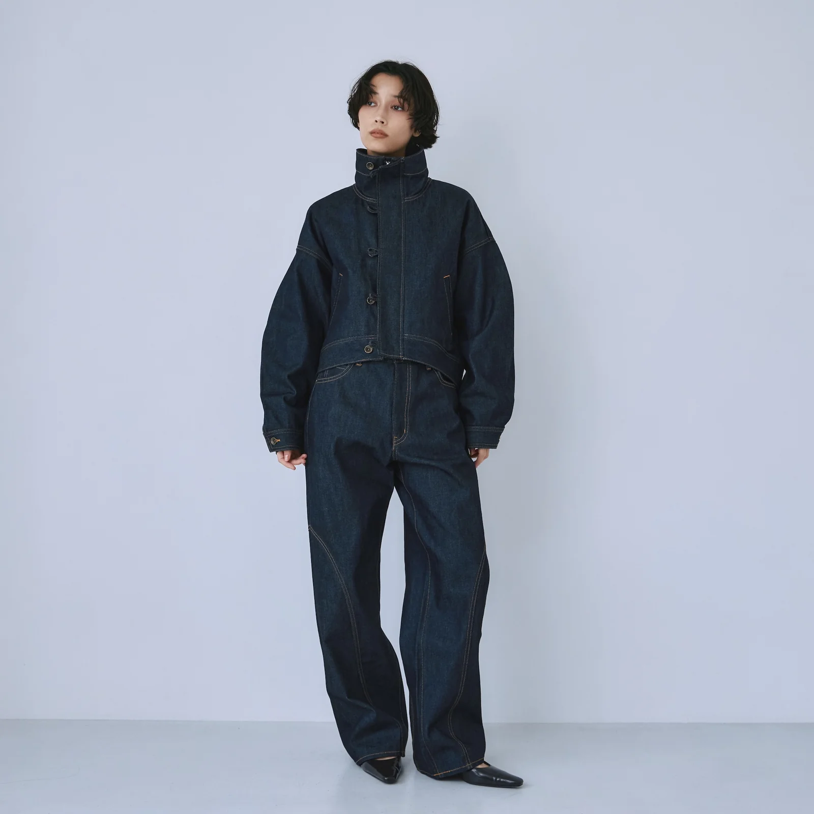 深みのある秋冬らしいカラーと上質な素材感にこだわったスタンドカラーデニムジャケット。丸みのあるフォルムやトレンド感ある首元のスタンドカラーで、存在感を与えながらも着回しやすい1枚。