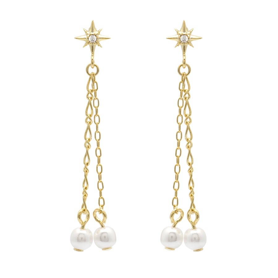 キラッと輝く小ぶりなシャインモチーフ💫 デザインの異なる2本のチェーンは、揺れる度印象を変えます💘 enjoueelは関西唯一の店舗です♡ 是非お立ち寄り下さいませ♡
