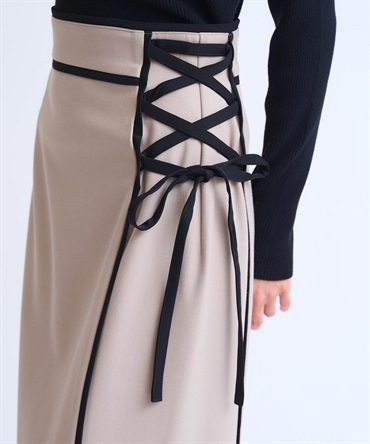 配色のサイドレースアップがアクセントとなるタイトスカート。