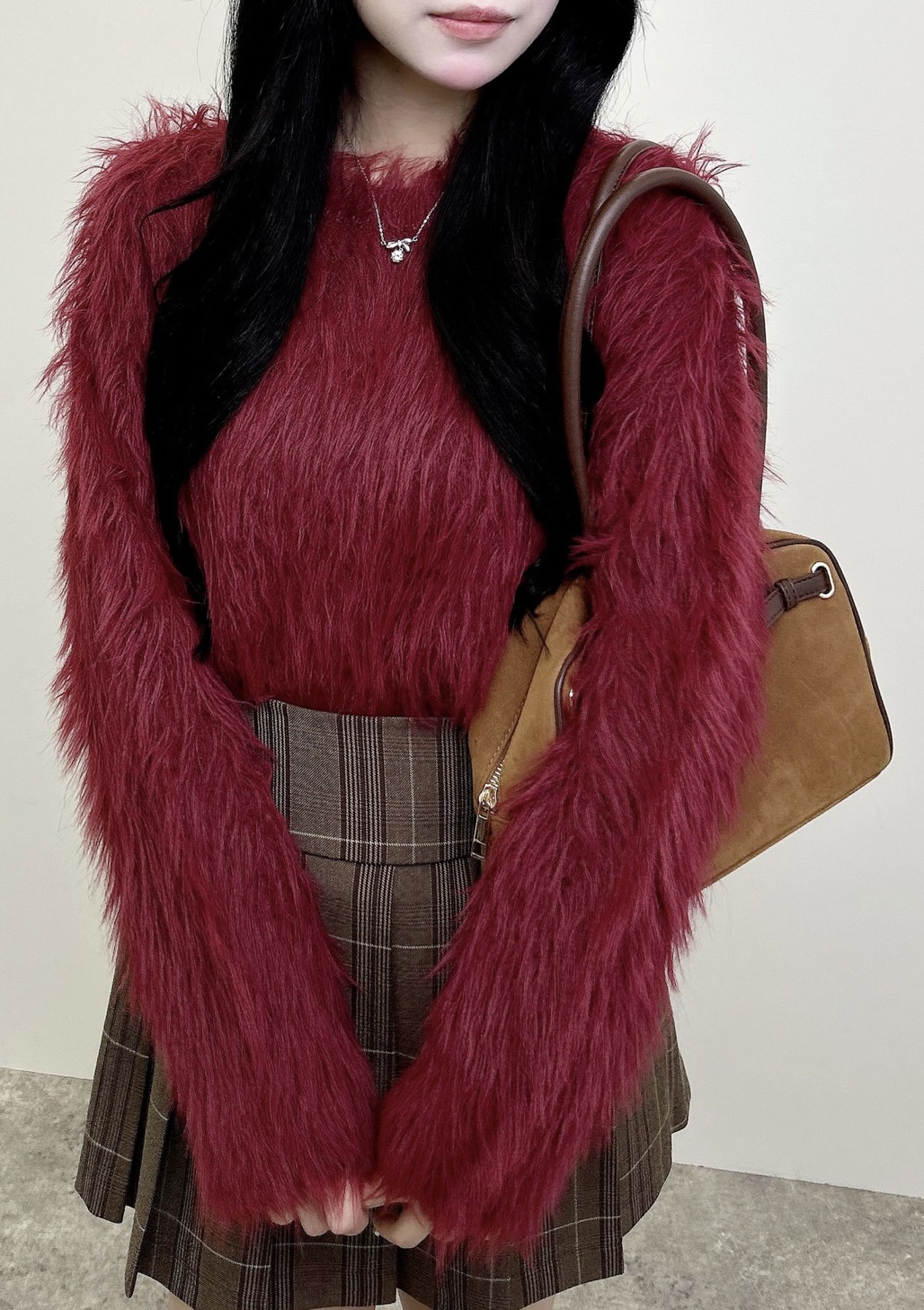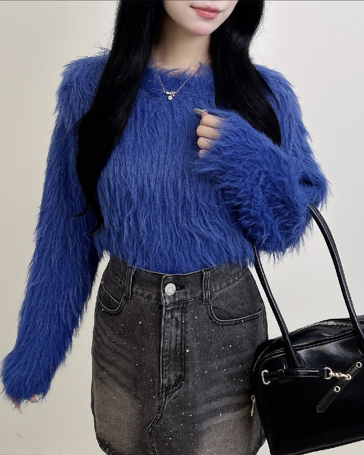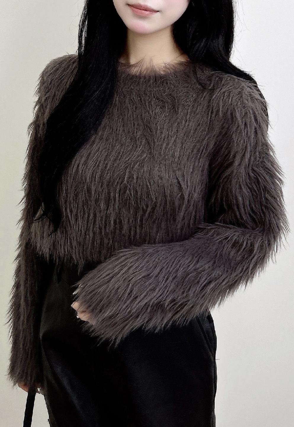 アニマルライクな毛足の長いふわふわのシャギーニット🧶