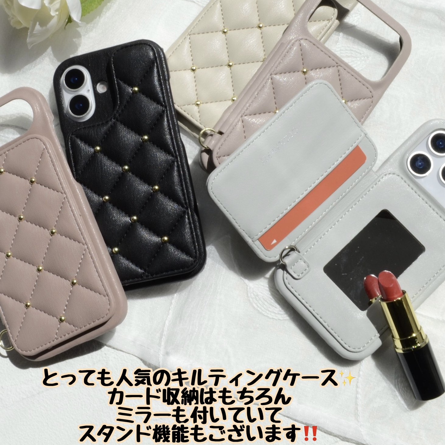 人気のキルティング背面ケース🌈