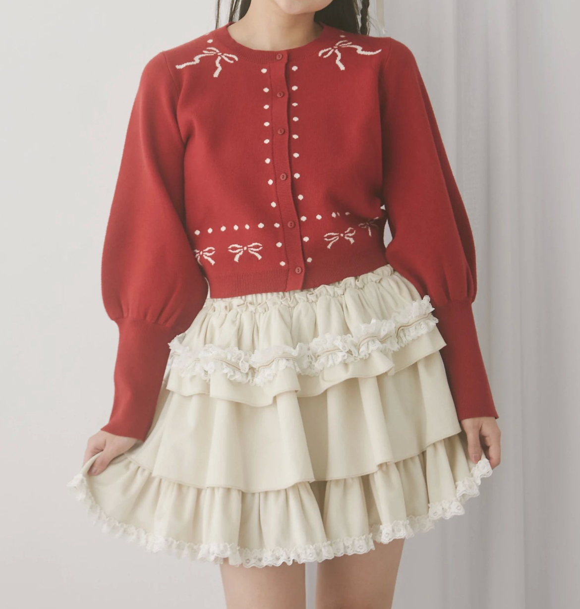 フリルのボリュームがたっぷりのフレアミニスカート。