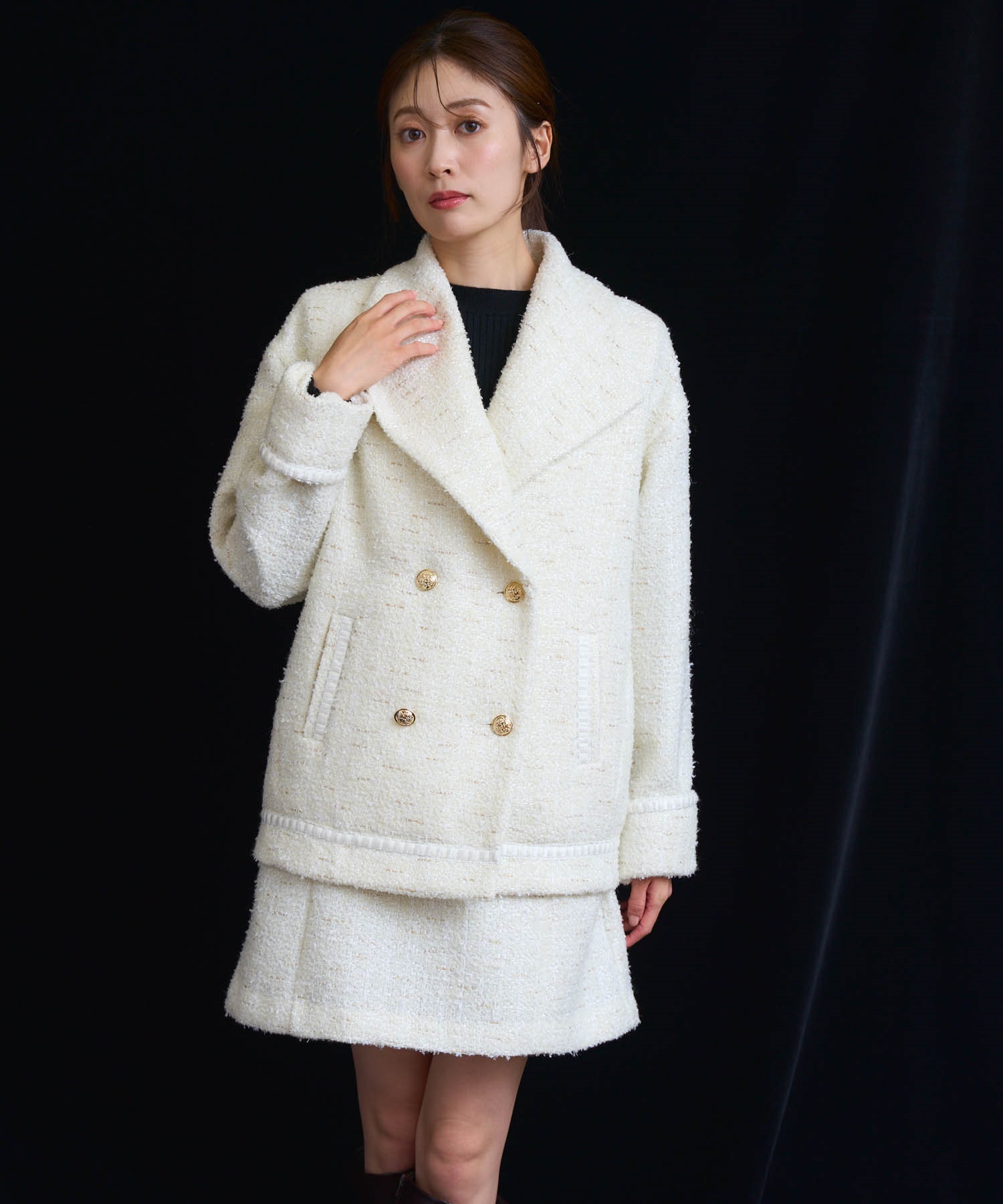 ラメ糸を織り込んだ華やかなツイード素材を使用しています。