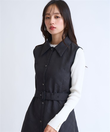 マトラッセ風のジャカード素材で仕立てた、シャツワンピース。