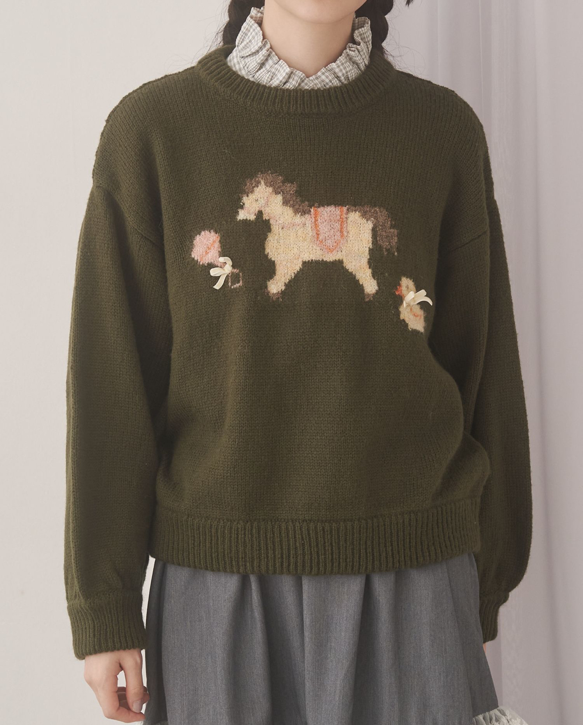 ベビーマラカスに、ベビーあひる、そしてベビーぽにーのベビ柄ニットトップス。