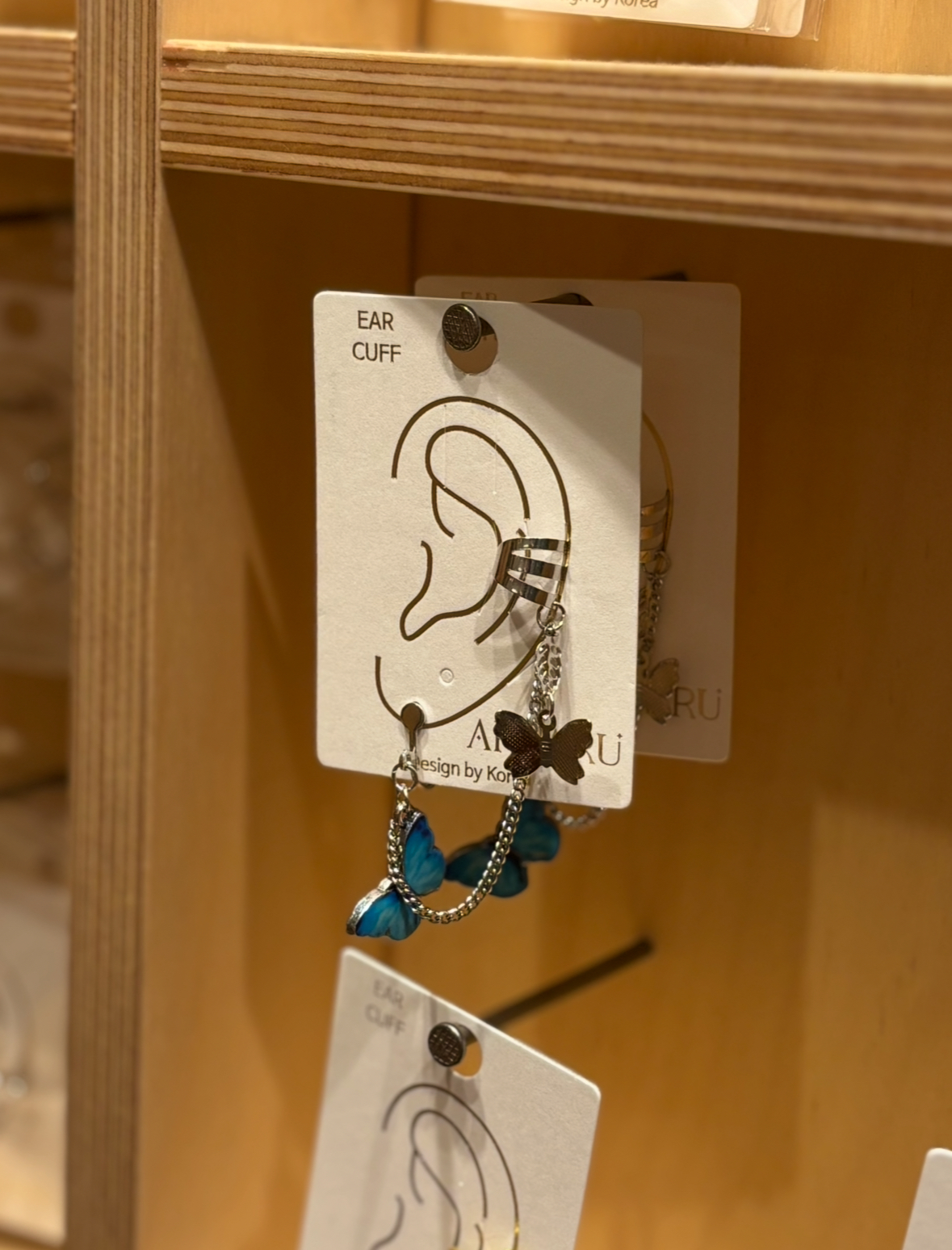 耳元でチェーンと蝶モチーフがゆらっと揺れるイヤーカフ🦋💫