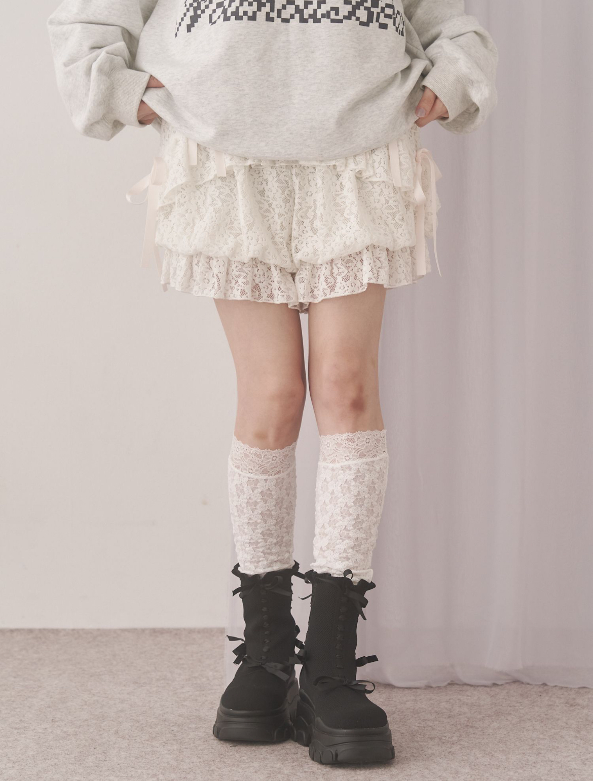 冬にぴったりな微起毛レースを全面に使用して、甘く柔らかな雰囲気に仕上げています。