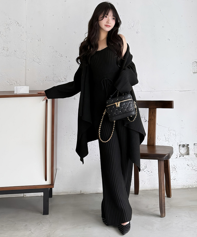 用尺をたっぷりと取り表情豊かに演出したイレヘムカーディガン×リブニットオールインワンのセットアイテム。