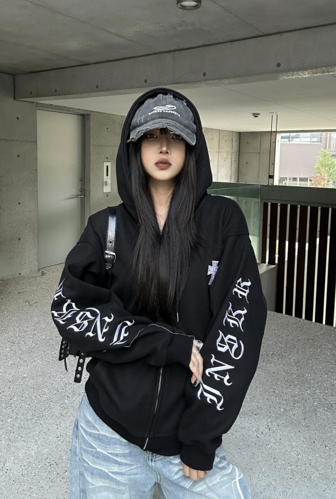 フード付きでカジュアル感を演出しつつ、ジップアップ仕様なので着脱も簡単です。