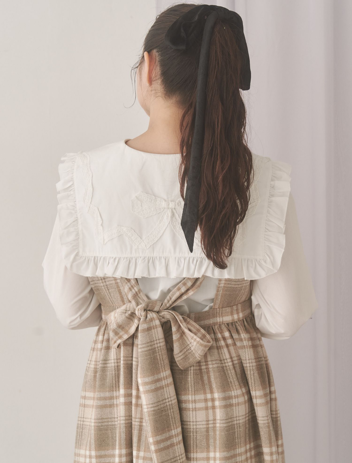 襟付きブラウスを重ねれば、ちょっとおすましな印象にも。