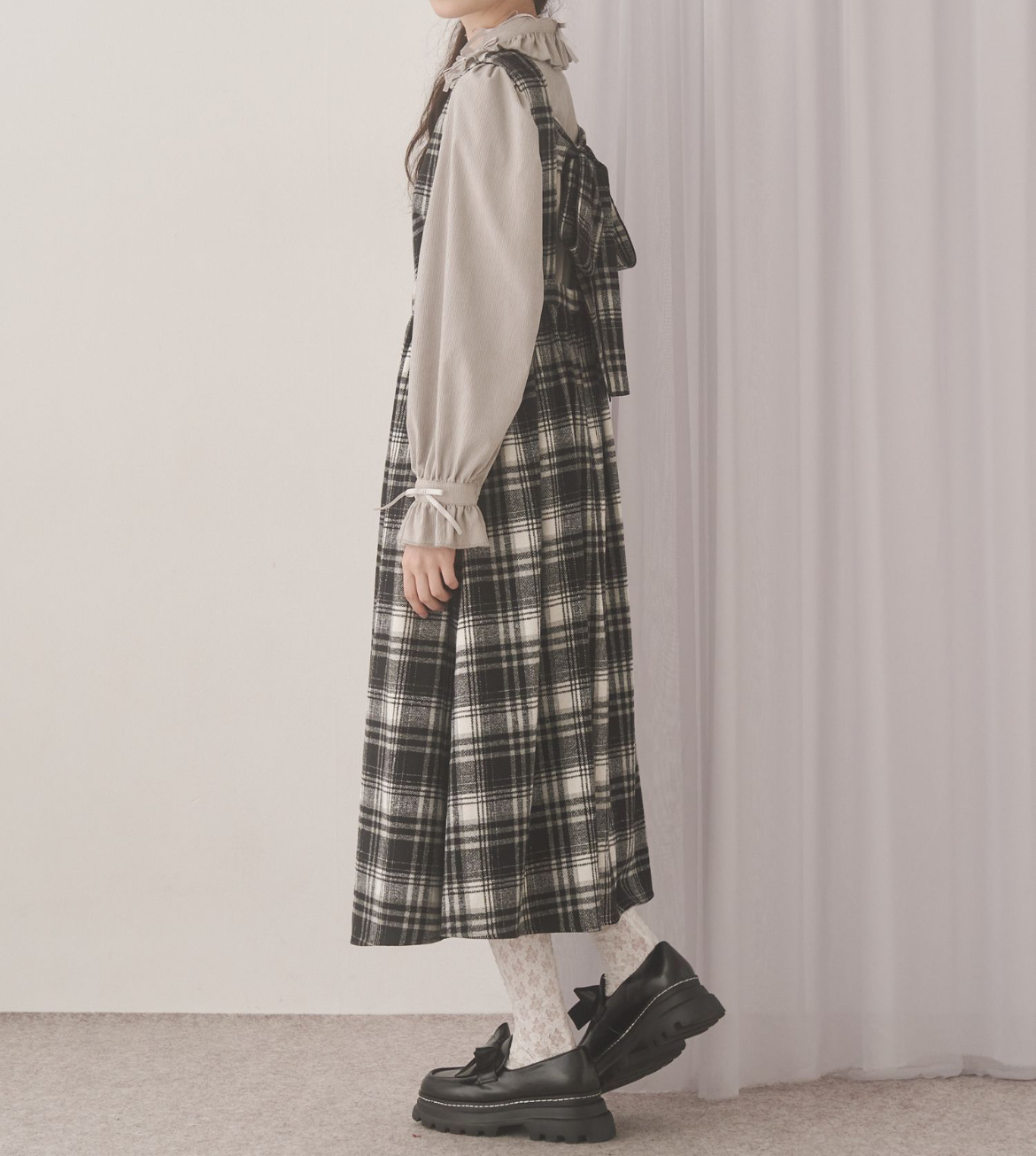 毎年人気のバックリボンワンピースが、今年は起毛感のあるチェック柄で新登場。