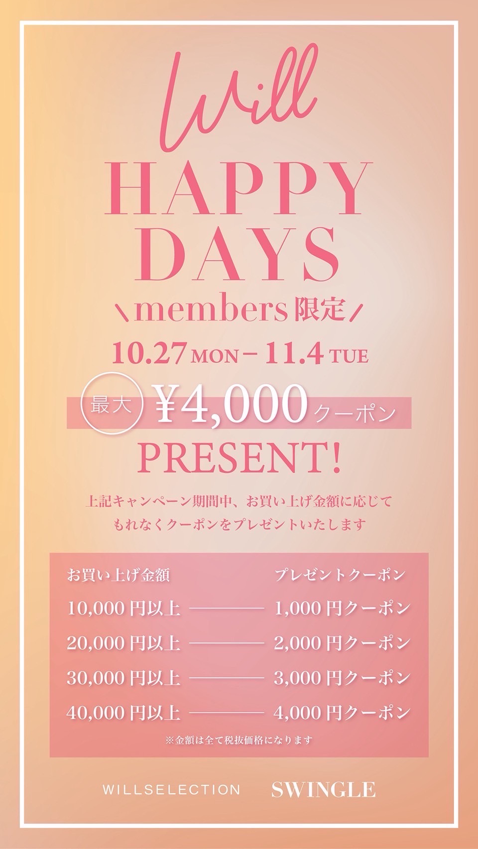 この度WILLSELECTION SWINGLE 梅田EST店は11/1で開店1周年を迎えます㊗️🎀