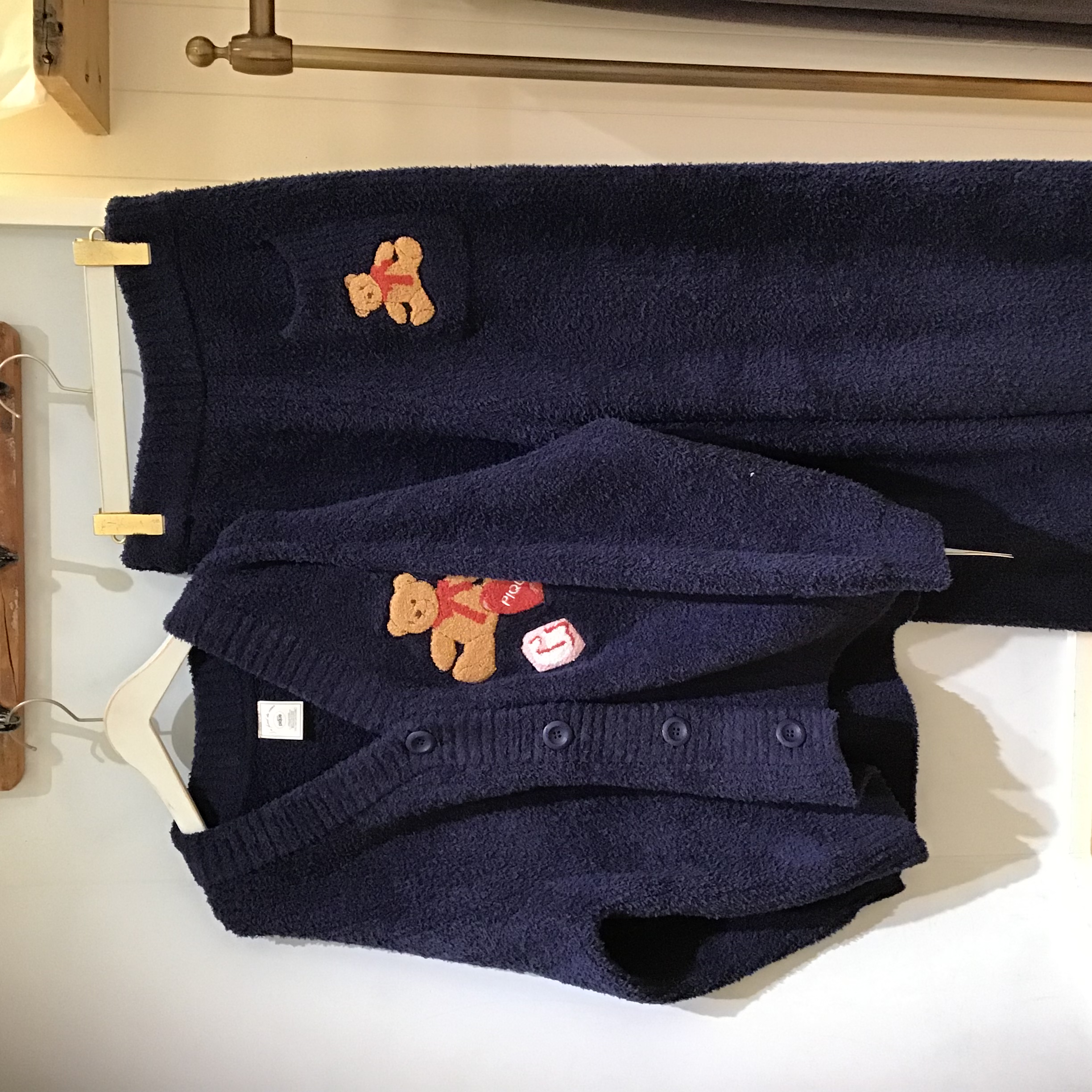 もっちり柔らかい‘ベビモコ’を畦編みにして使用したVネックのカーディガン。胸元にはベアのぬいぐるみとハートのクッション、雑誌から切り抜いたような『G』のサガラ刺繍が入っています。身幅はゆったりとさせつつも、やや短めの丈感でトレンドライクに着こなせるシルエット。ロングパンツは左腰にロゴ刺繍を入れ、後ろポケットにはベアのぬいぐるみをモチーフにしたサガラ刺繍が入っています。すっきりとした動きやすいストレートシルエット。色はアイボリー、ピンク、ネイビーの3色展開です。