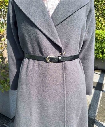 上品な女性らしさを演出する、ベルト付きのリバーショールコート。