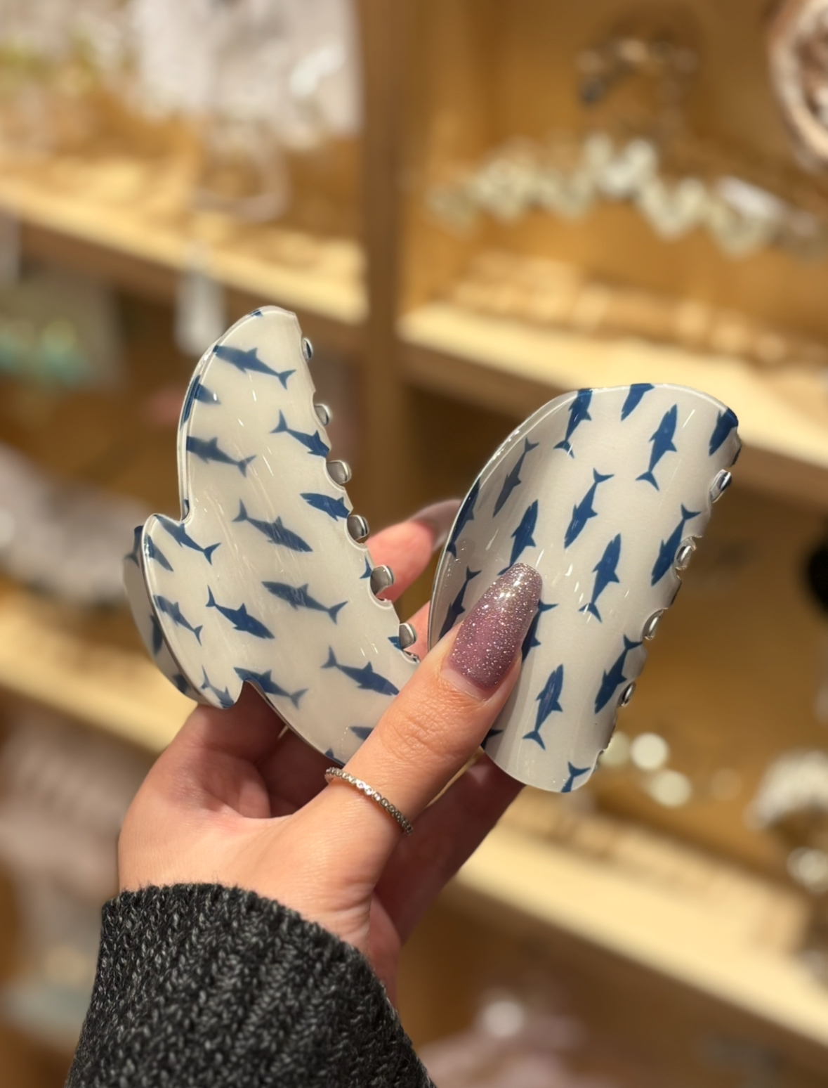 トレンド感のあるくすみホワイト×ブルーの配色が今っぽくてかわいいバンスクリップ🦈💙