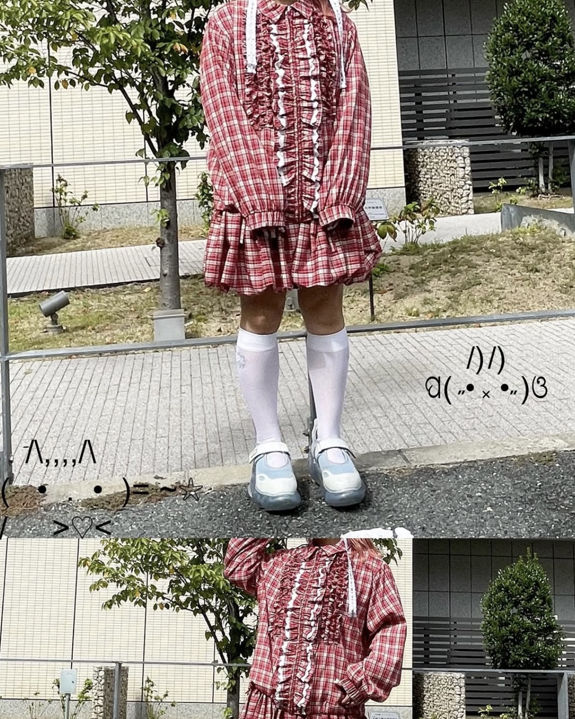 CHECK FRILL JACKET & CHECK BALLOON SKIRT