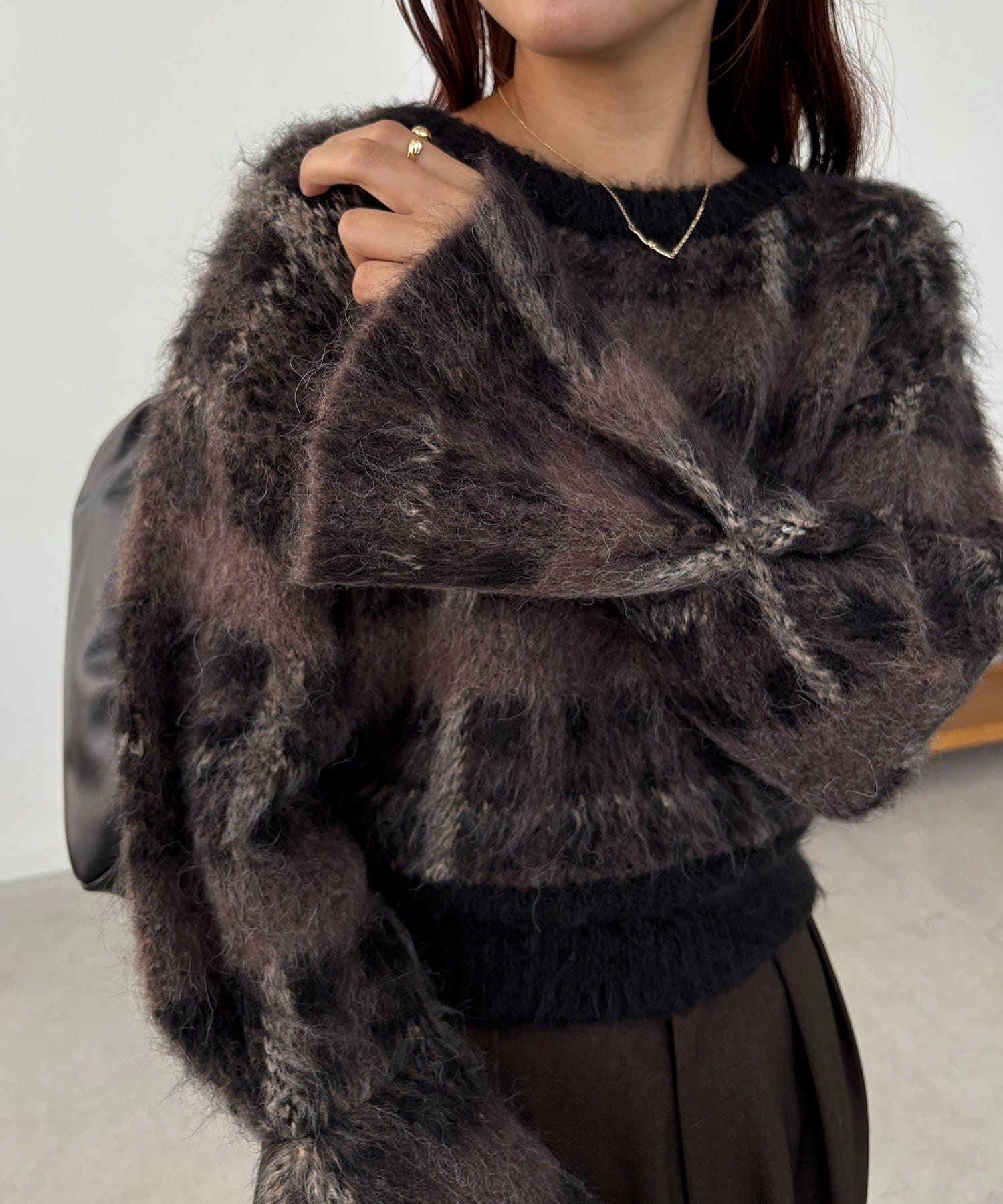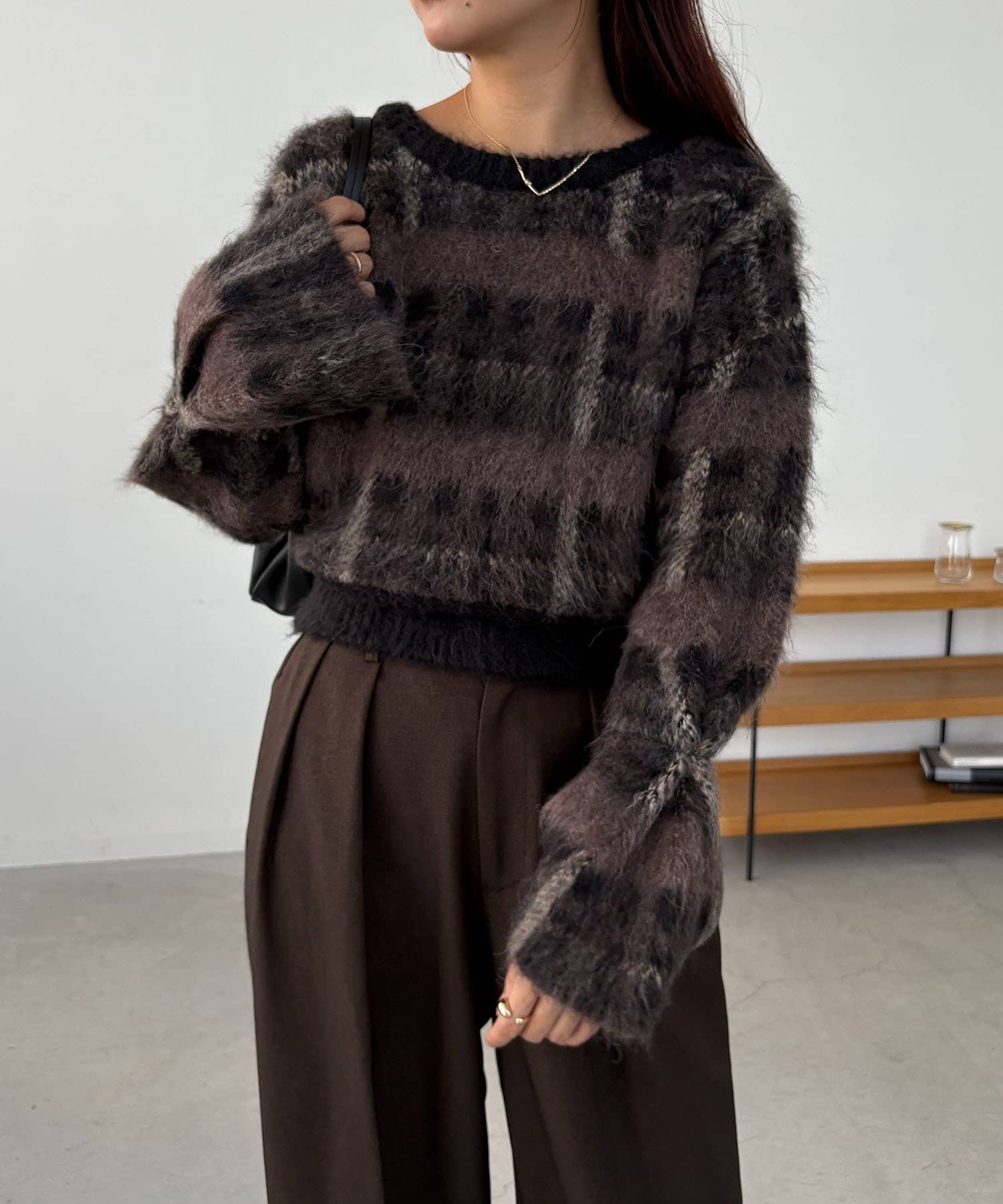 3配色のジャガード編みに起毛加工をかけたニュアンス感のあるチェック柄♡