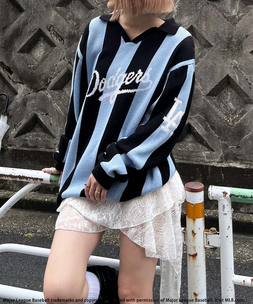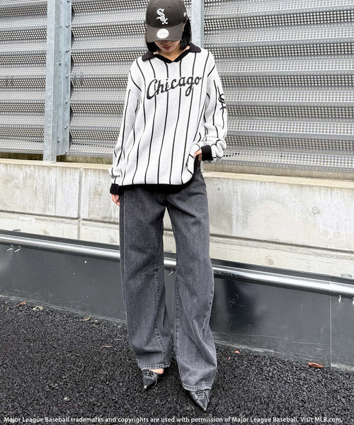 クラシカルなユニフォームをイメージした、主役級デザインのジャガードポロニット。 各球団のチームロゴを大胆に配置し、存在感たっぷりに仕上げました。 程よいゆったりシルエットでボトムを選ばずボーイズライクな着こなしが叶います◎ スポーツカルチャーとファッションがミックスされた、今シーズン注目の一着です。