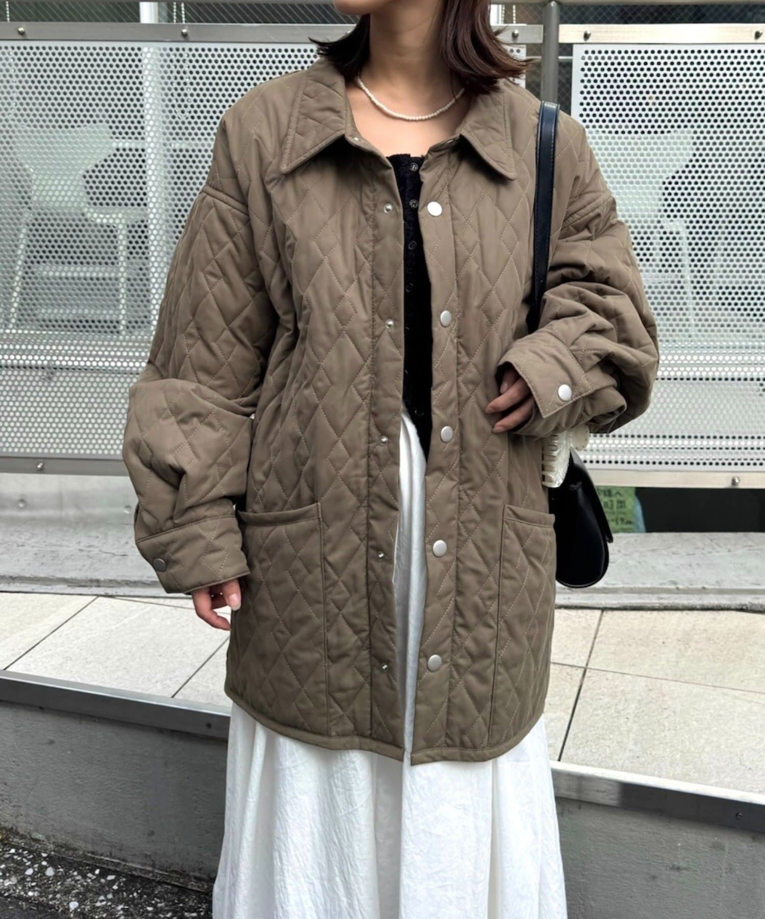 程よくゆったりとしたシルエットでニットの上でも安心して羽織れるサイズ感です!ウエスト部分が調整可能の為、着太りせず着ていただけます!