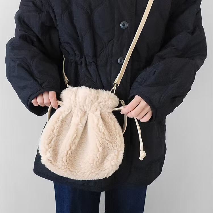 モコモコで可愛い巾着の形をしたショルダーバックです♡