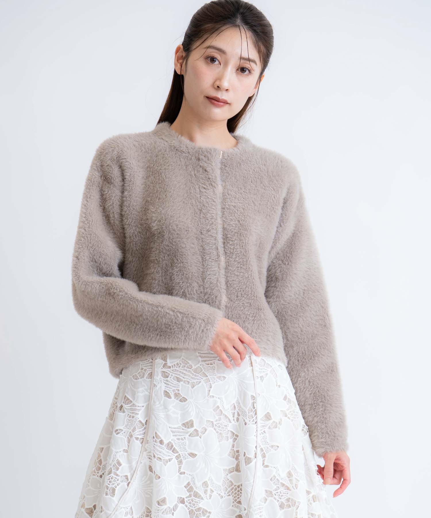 コーデを上品に華やげてくれる、ふわふわのシャギーニットジャケット。