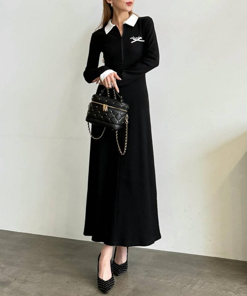 甘さと色気を両立する、襟付きカットリブワンピ。着心地の良いカットリブ素材で、さらっと着られるのにしっかり女っぽいのが魅力です。
