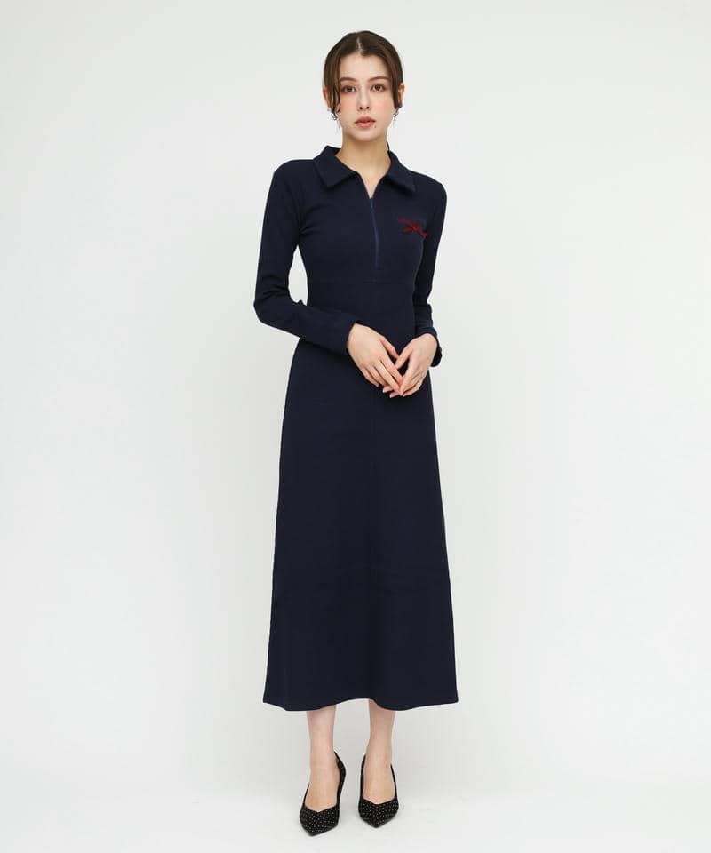 襟付き×フロントファスナーのデザインで、胸元の開き加減を自分好みに調整できるのも嬉しいポイント。