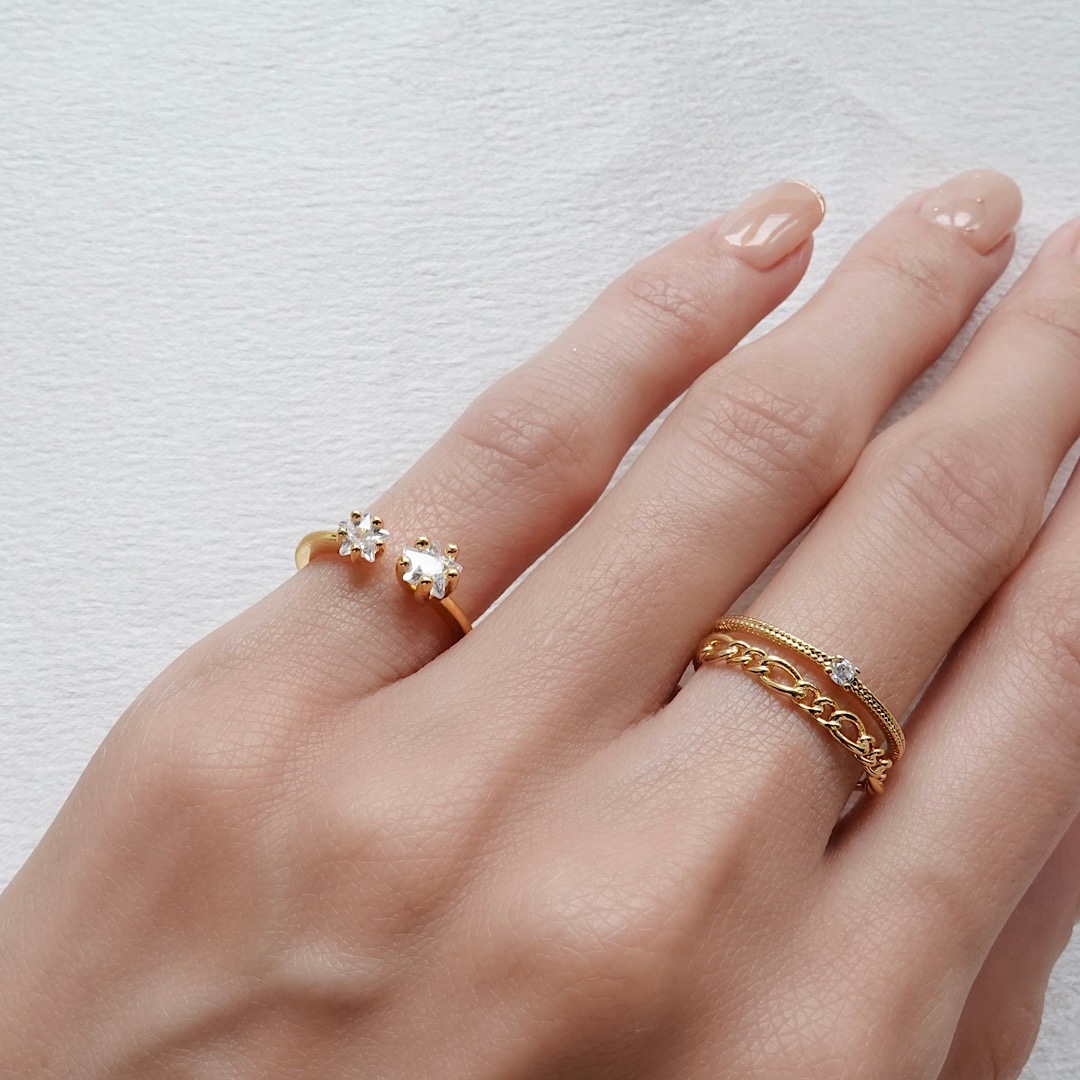 立体感のある縦爪デザイン💍 クリアストーンは⭐︎の形になっており、可愛さもプラスしたリングです⭐️ enjoueelは関西唯一の店舗です♪ 是非お立ち寄りくださいませ!♡