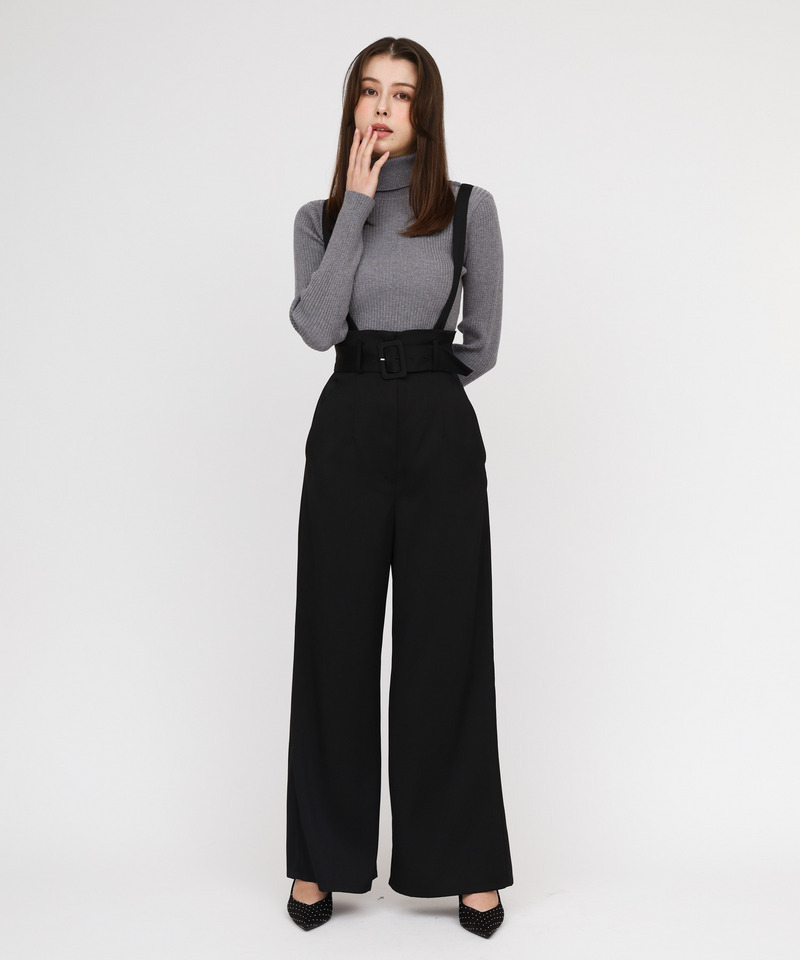 共地のサスペンダーは取り外し可能で、付けてクラシカルに、外してシンプルにとスタイルの変化を楽しめます。