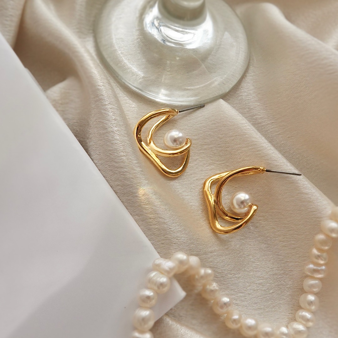 角度によって見え方の変わるダブルフープデザイン💘 甘すぎず大人カジュアルに合わせていただけます✨✨ enjoueelは関西唯一の店舗です♡ 是非お立ち寄り下さいませ♡