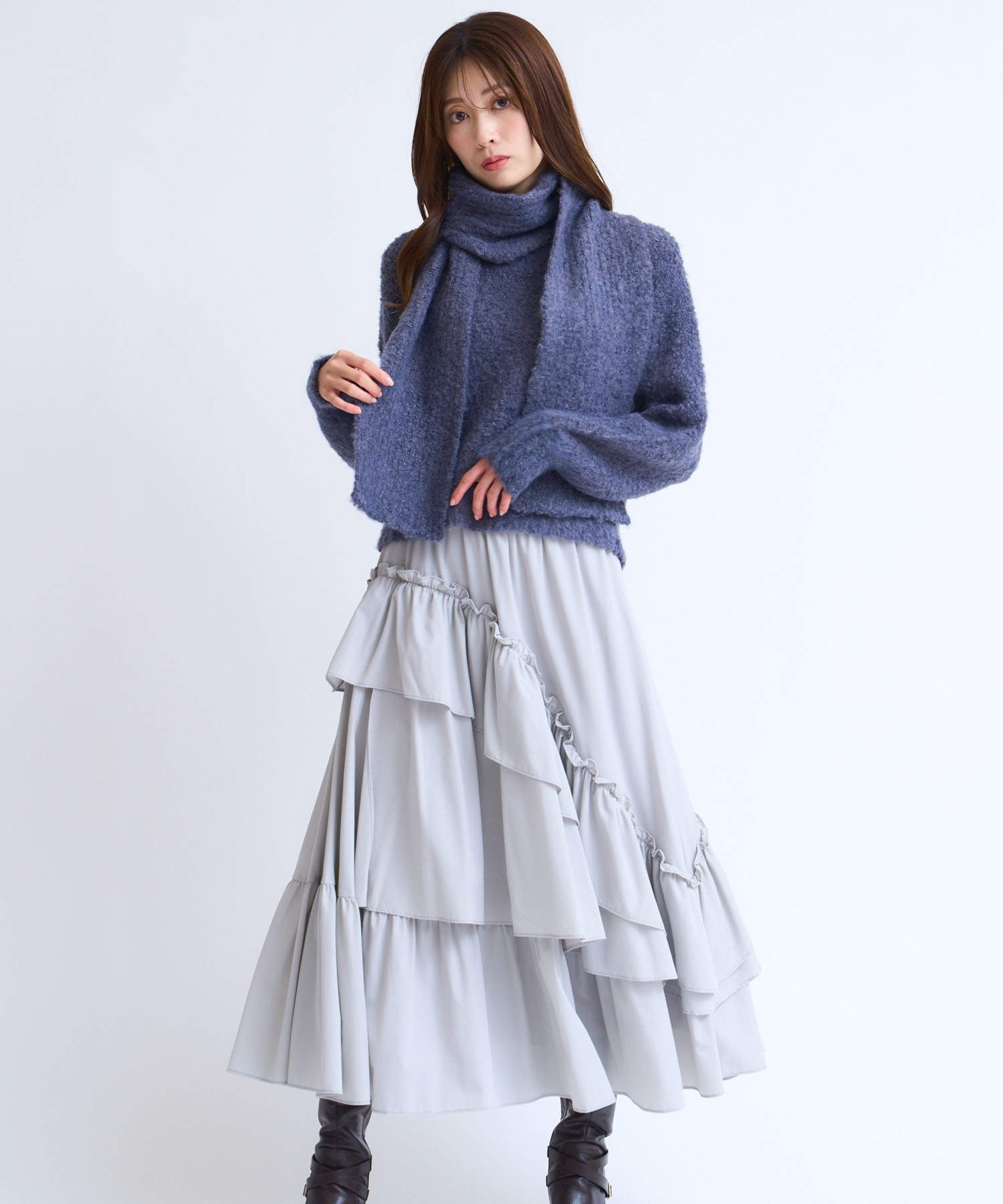 マフラーニットやゆったりとしたニットとのコーディネートがおすすめで、季節感あるスタイルをお楽しみいただけます。