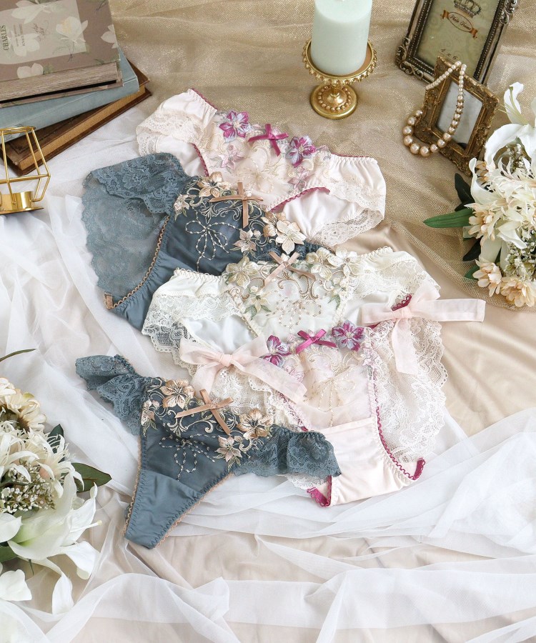 ユリの女王、カサブランカのお花をイメージしたシリーズです。カサブランカをモチーフにしたインパクトのあるお花は、密度のあるステッチで美しい光沢感を演出。ロープタッセルのようなドット柄のリボンや、多彩なモチーフを大胆に組み合わせて、どこかエスニック感のある印象に仕上がりました。その上からカサブランカのアップリケを重ねることで、カップのエンブレースとは異なるカラーリングが加わり、お花1つ1つが引き立つ豪華で奥行きのあるデザインに。ラメ糸の輝きとカサブランカの高貴な気品あふれる世界観が、思わず目をひくコレクションです。