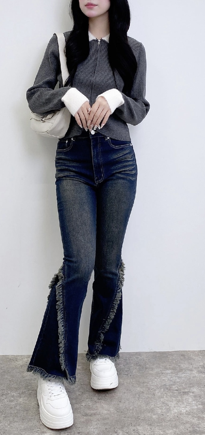 ●300254 フリンジフレアデニムパンツ ¥4,290(tax in)