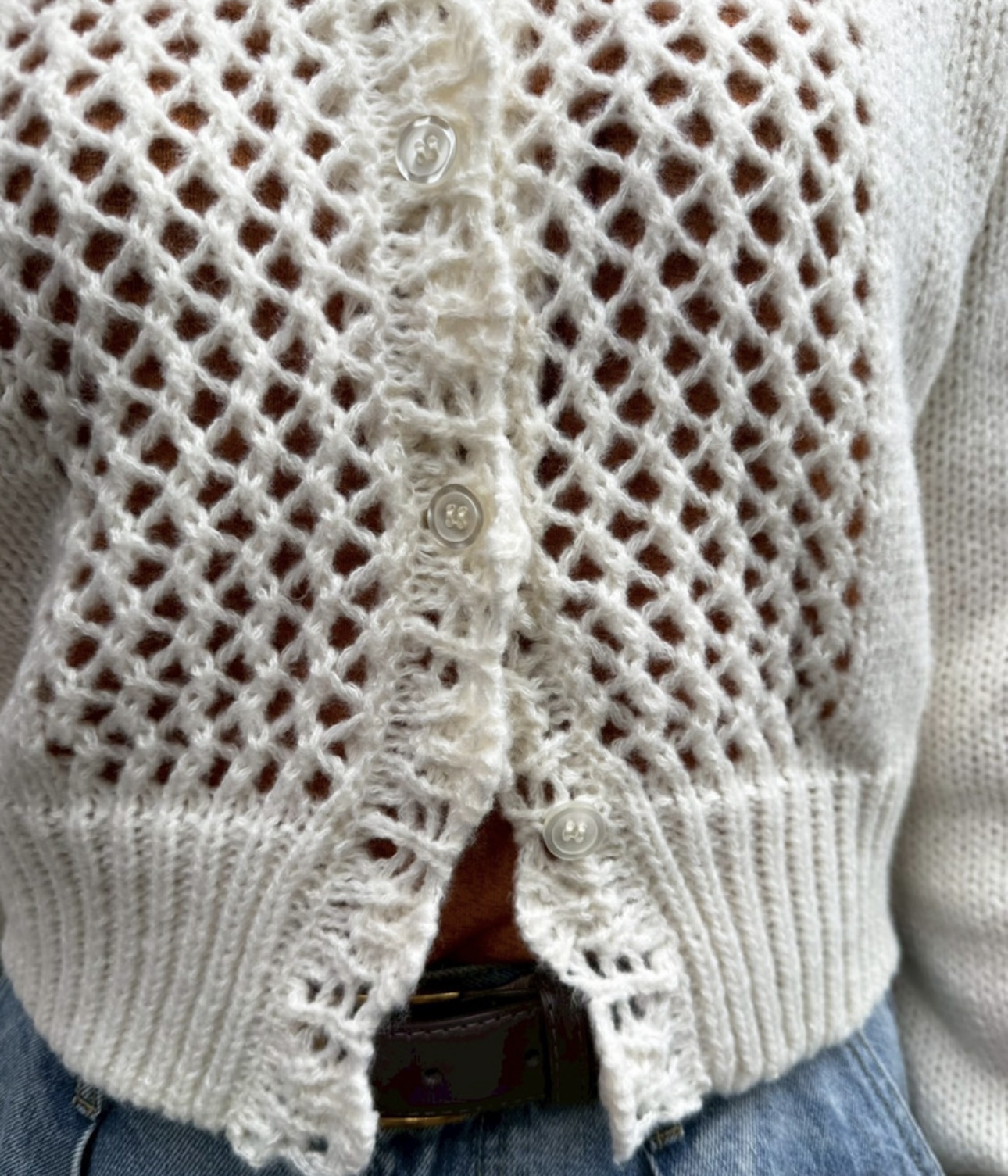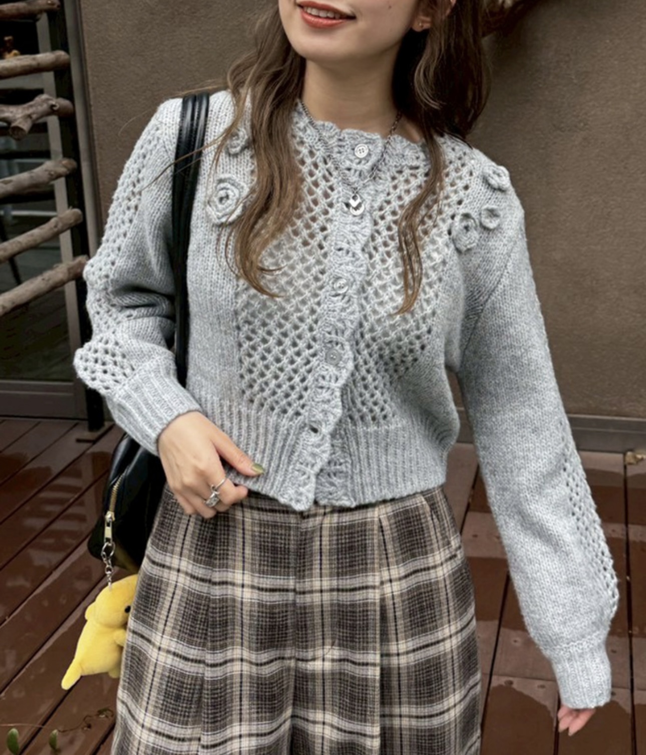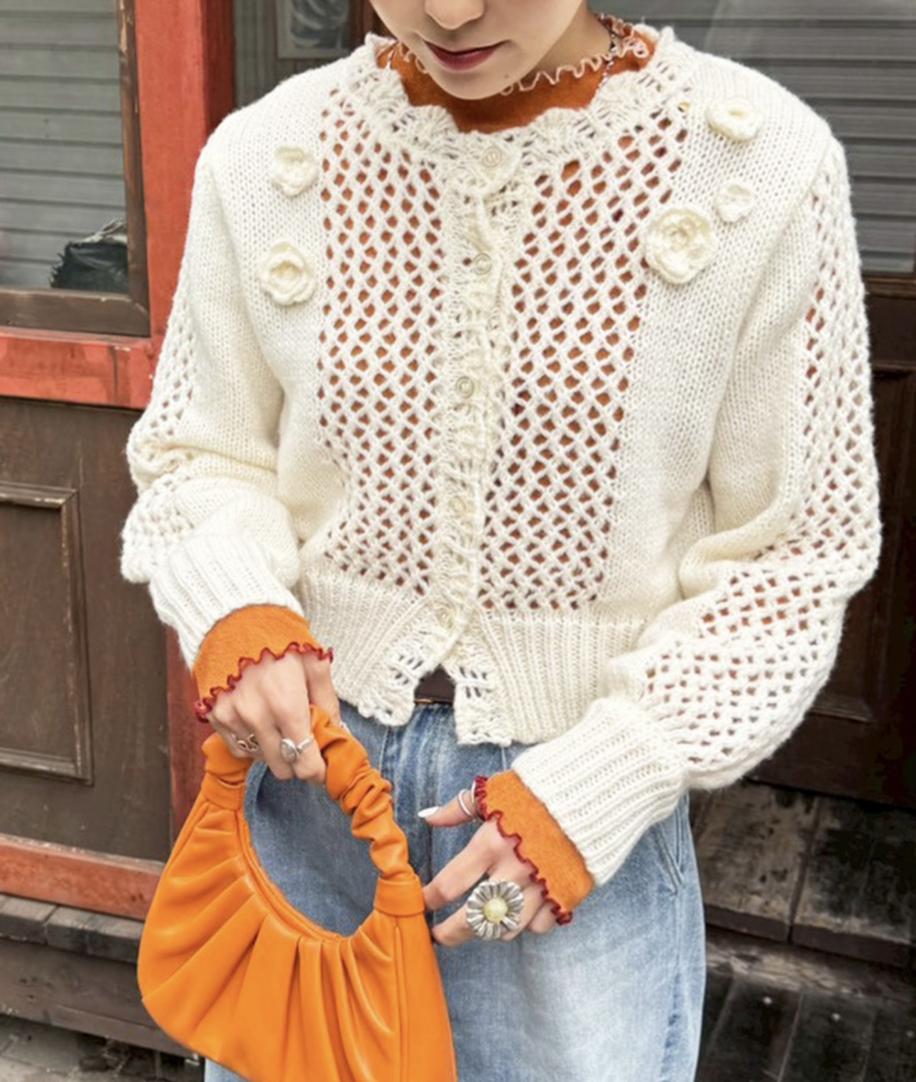 季節の変わり目にさらっと羽織れる、透かし編みカーディガン。