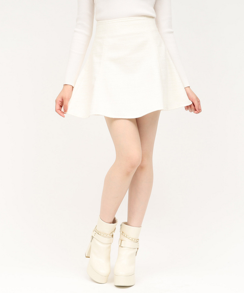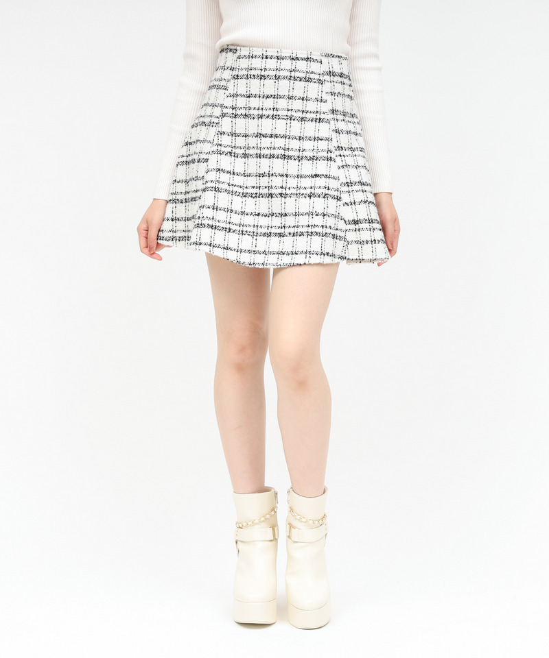 冬らしい素材感と華やかなツイードの表情で、トップス次第でフェミニンにもカジュアルにもスタイリングできる1枚です。
