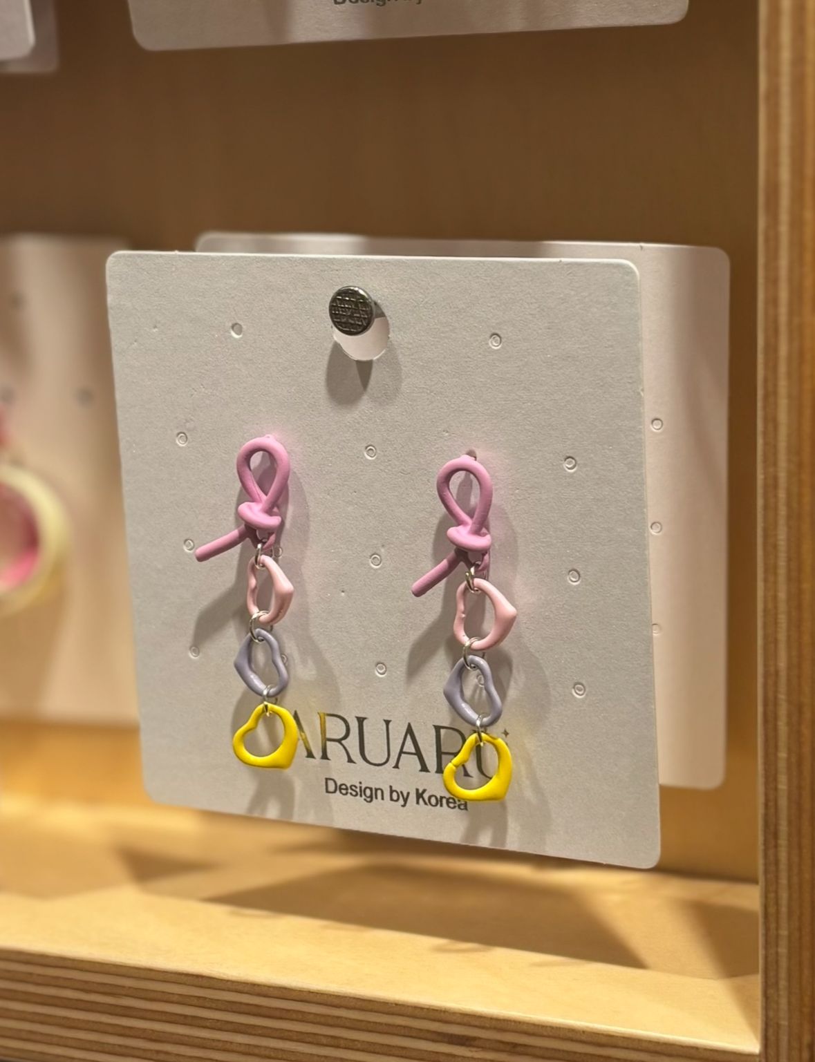 やわらかなパステルカラーのハートが連なるキュートなピアス♡