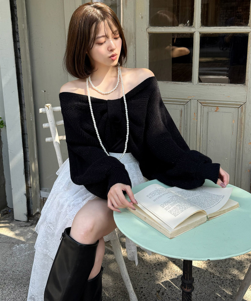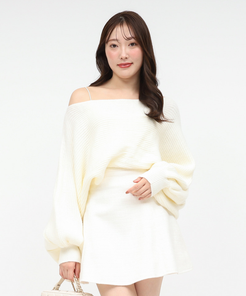 ゆったりとしたドルマンシルエットと畦編みの表情が魅力のニットトップス。