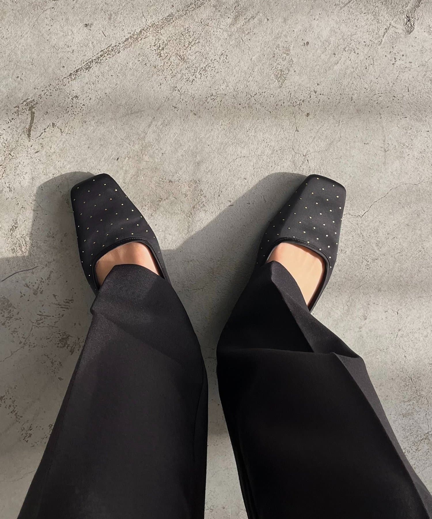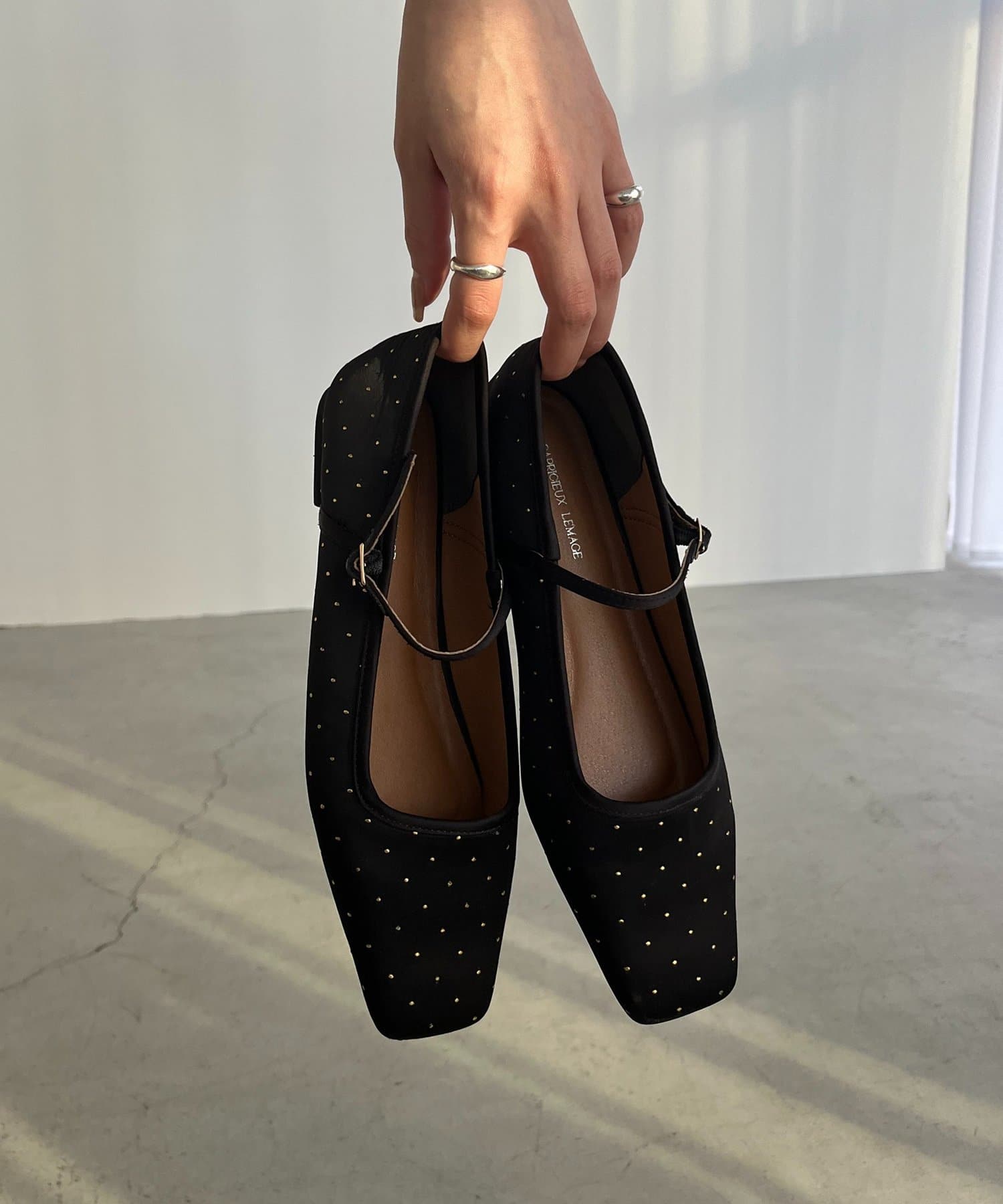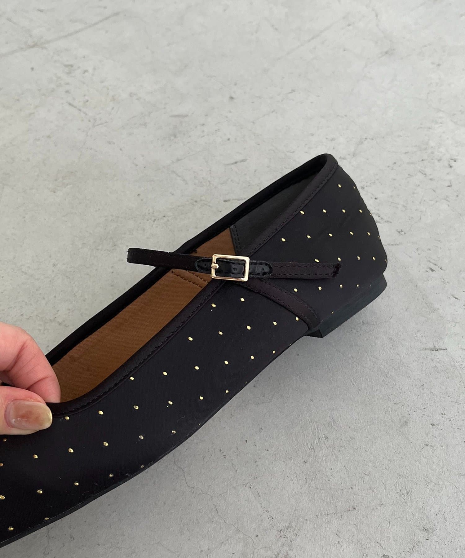 ゴールドのドット柄が上品さをプラスしてくれるフラットパンプスです♪