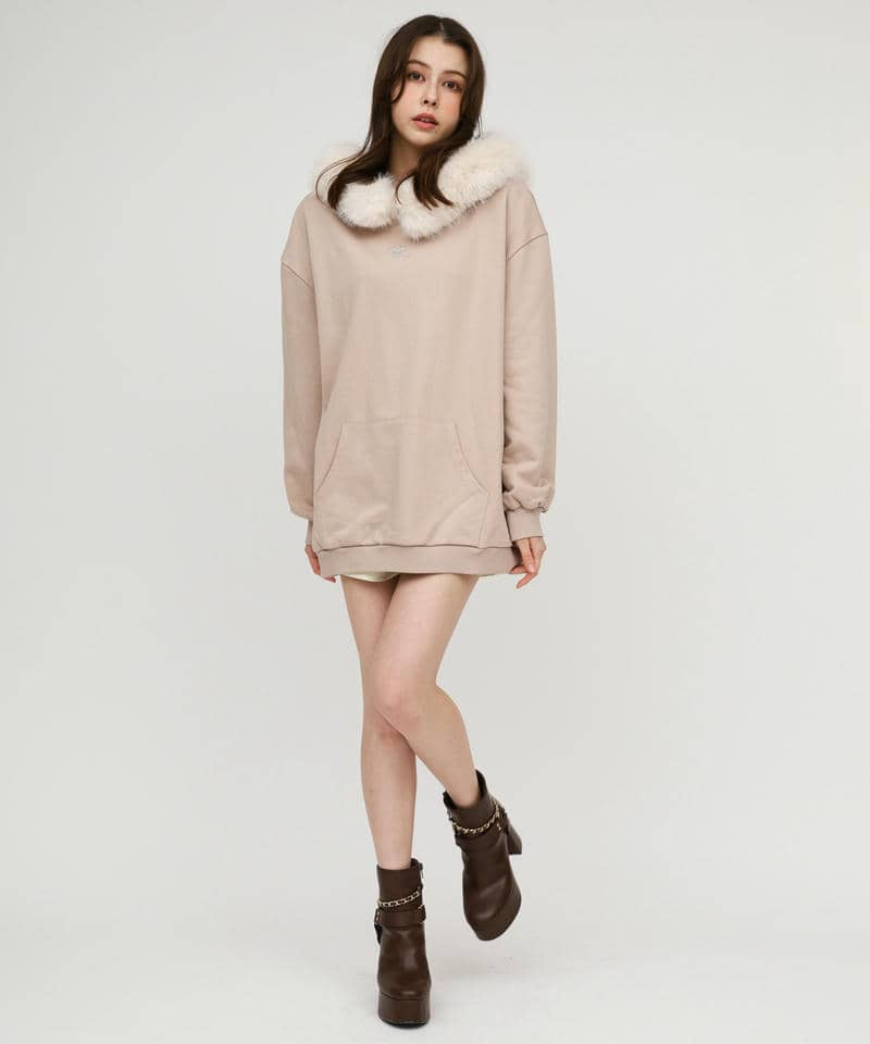 ボディーラインをカバーしてくれるゆったりとしたシルエットで着やすさ抜群の裏毛フーディーミニワンピース。