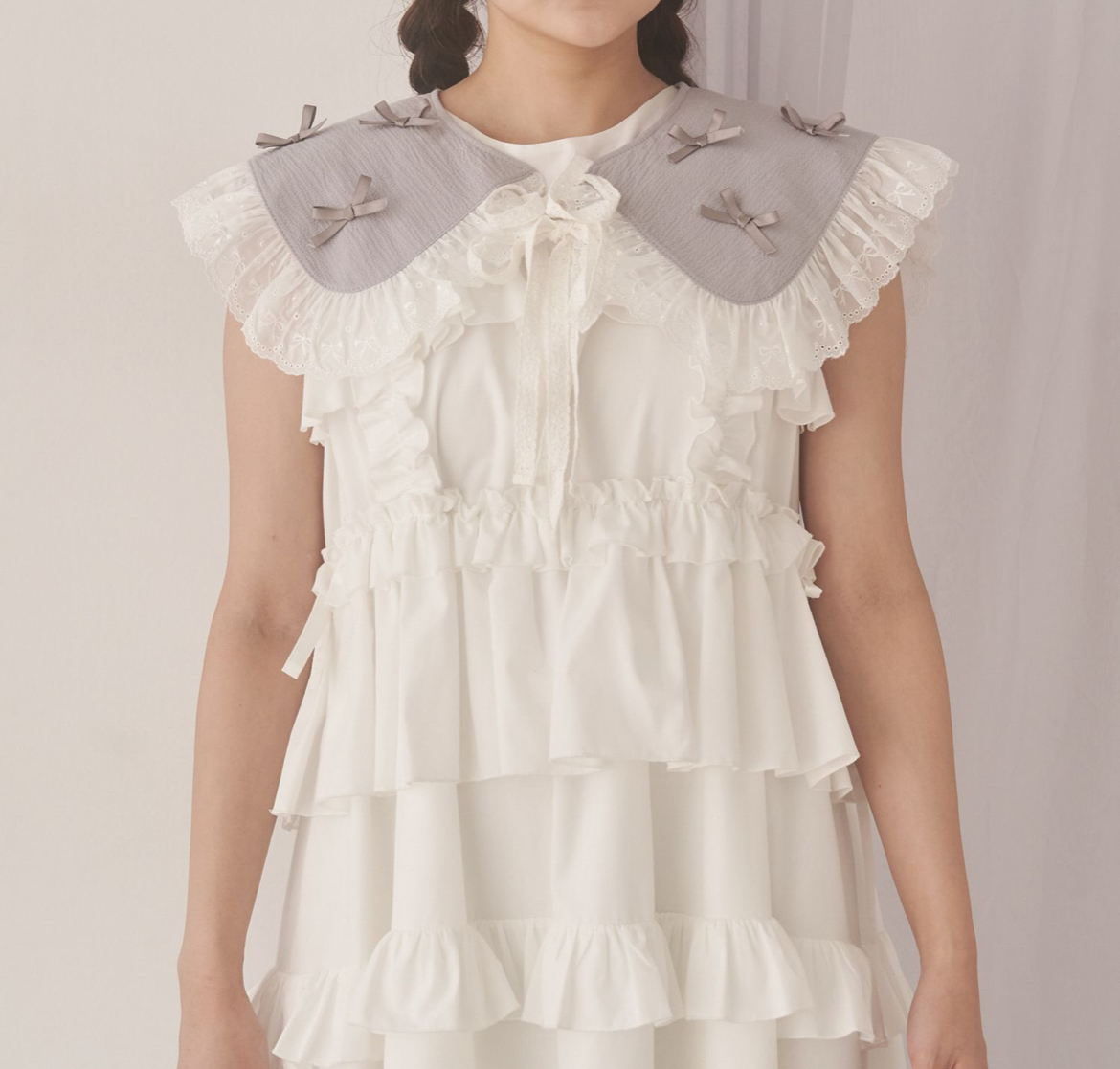 たっぷりのレースを挟み込んで、ちょこんとしたリボンをちりばめたつけ襟〇