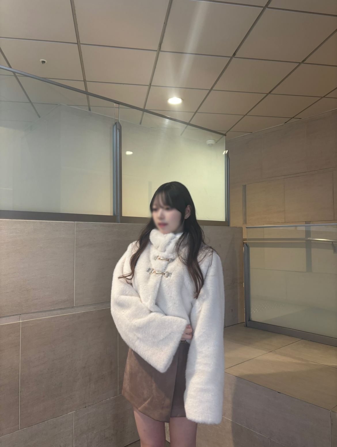・袖口は広めにボリューム感を持たせ、見頃はクロップド丈ですっきりと女性らしく見せてくれるファージャケット。