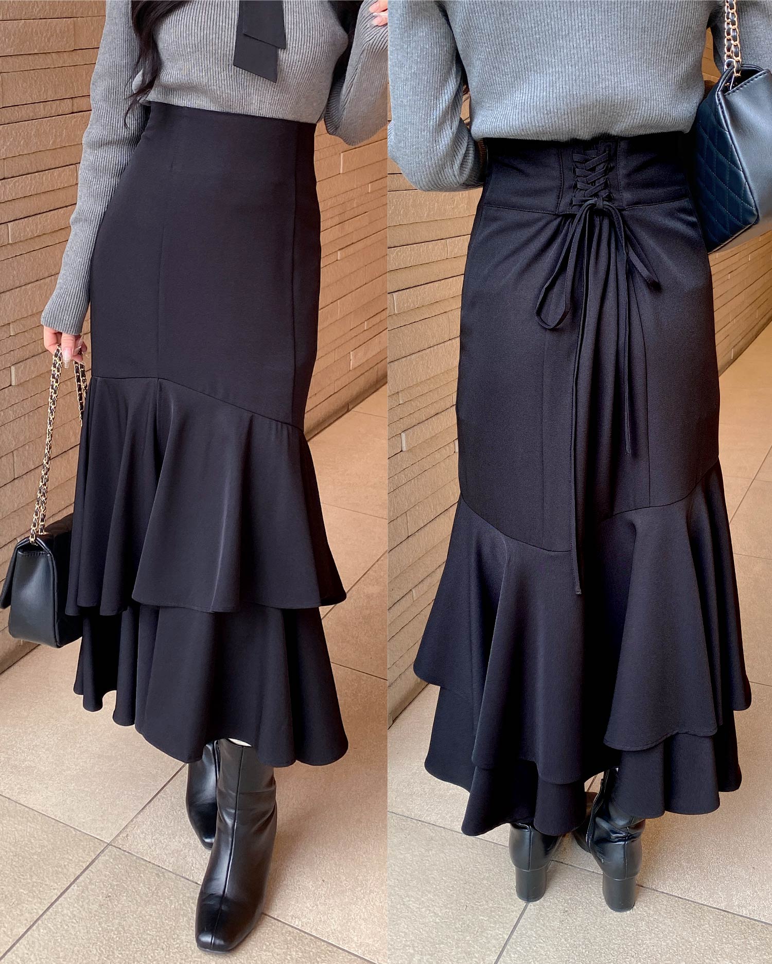 1254-300291 バックレースアップアシメティアードスカート
