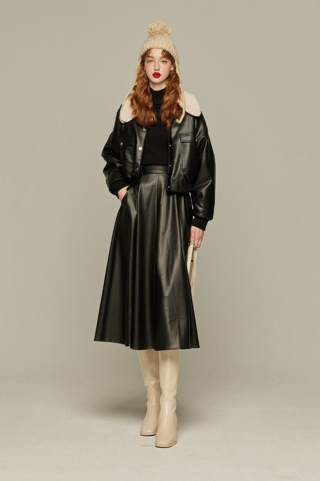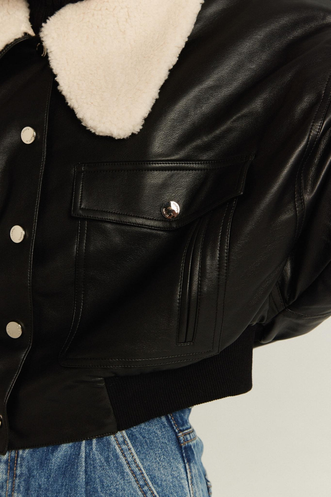 取り外し可能な襟のボアがかわいいフェイクレザージャケットです!