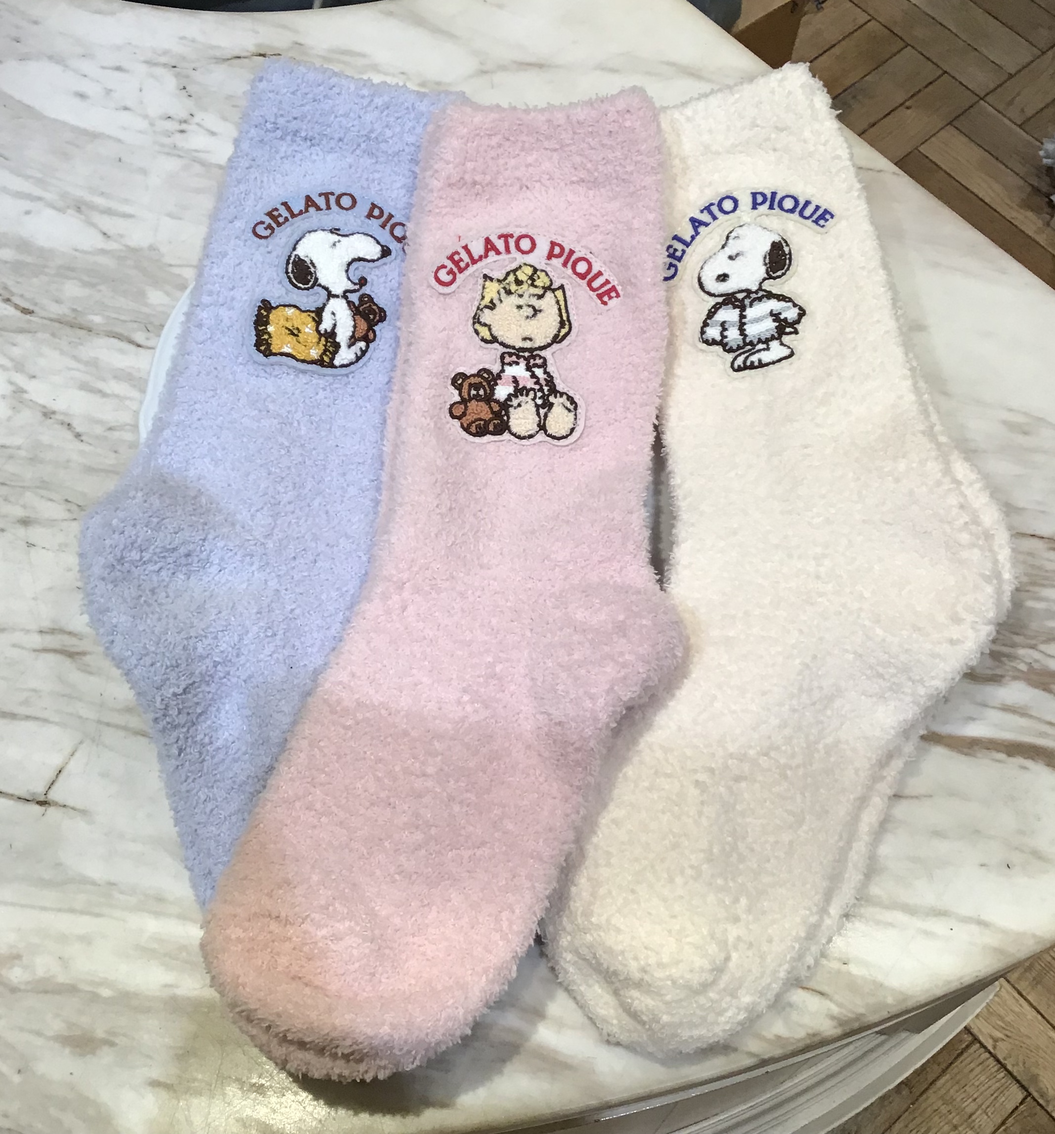 PEANUTS ・ gelato piqueだけのオリジナル描き起こし・大きなさサガラ刺繍がキャッチーなベビモコソックス🧦✨を紹介します🎀