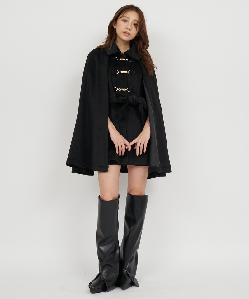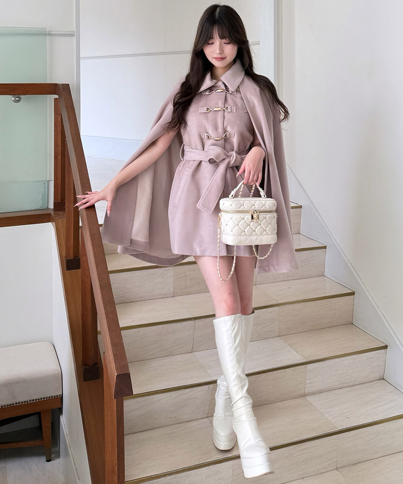 ふんわりと肩を包み込むケープシルエットが印象的なコートは、羽織るだけでクラシカルなムードが漂う1着。
