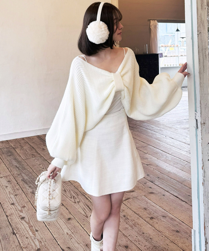 共地のベルトを中央に巻き付けると、リボン型にアレンジでき、シンプルな着こなしに遊び心と華やかさをプラスします。