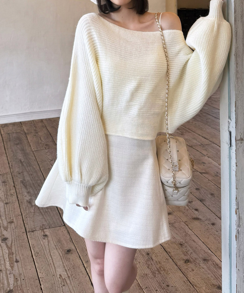 ゆったりとしたドルマンシルエットと畦編みの表情が魅力のニットトップス。